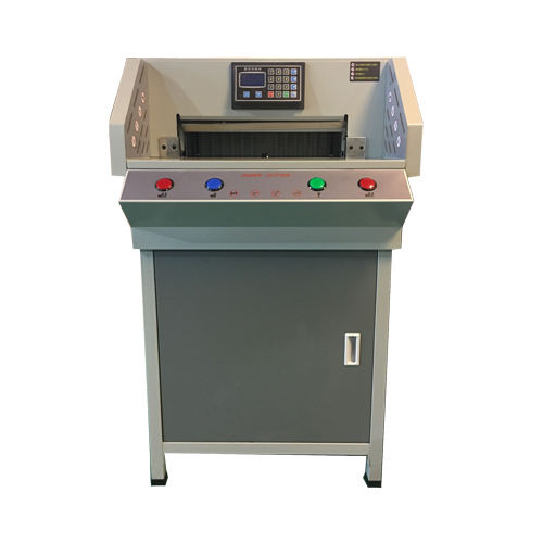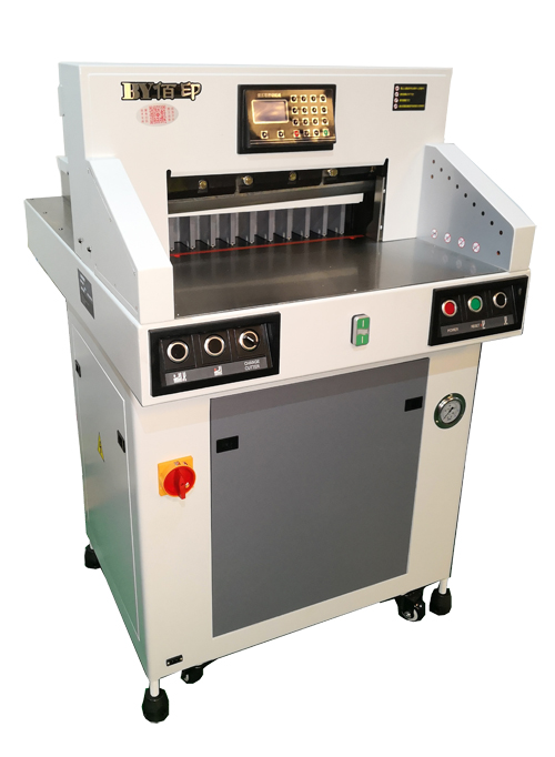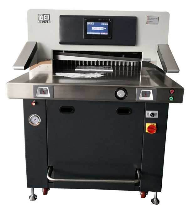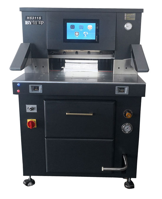 三:5311生产型液压程控切纸机: 可以切到11CM厚的资料,且不飘刀,速度更快 加厚刀架,加厚立柱,让机器更耐用,更有劲,更稳定